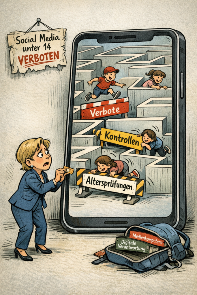 Was wir brauchen, ist kein Verbot, sondern eine ehrliche Debatte über echte Lösungen. Lasst uns über Aufklärung, technische Schutzmaßnahmen und elterliche Verantwortung sprechen – statt über sinnlose Verbote, die am Ende nur Symbolpolitik sind. Die digitale Welt ist kein Ort, den man einfach abschalten kann. Es ist an der Zeit, dass wir lernen, verantwortungsvoll mit ihr umzugehen – und das beginnt nicht mit einem Verbot, sondern mit einer offenen und konstruktiven Diskussion.
